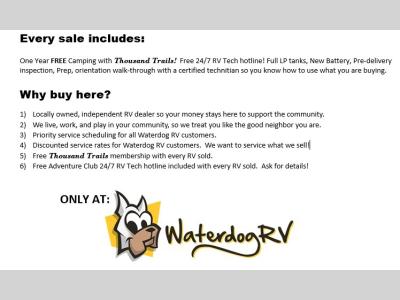 Waterdog RV is not responsible for any misprints, typos, or errors found in our website pages. Any price listed excludes sales tax, registration tags, and delivery fees. Manufacturer pictures, specifications, and features may be used in place of actual units on our lot. Please contact us @503-864-9513 for availability as our inventory changes rapidly. All calculated payments are an estimate only and do not constitute a commitment that financing or a specific interest rate or term is available.